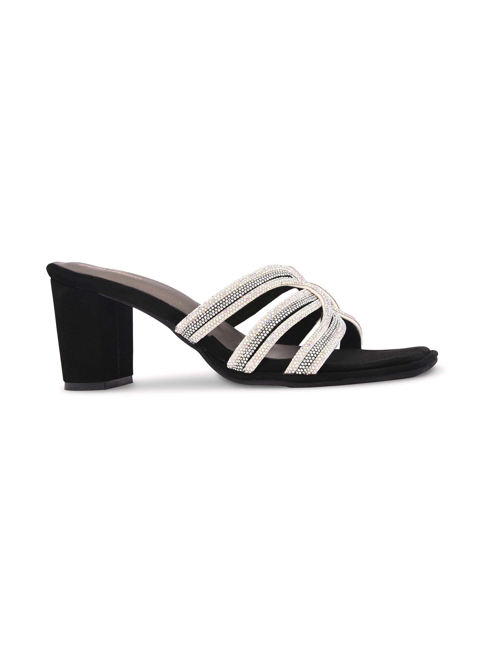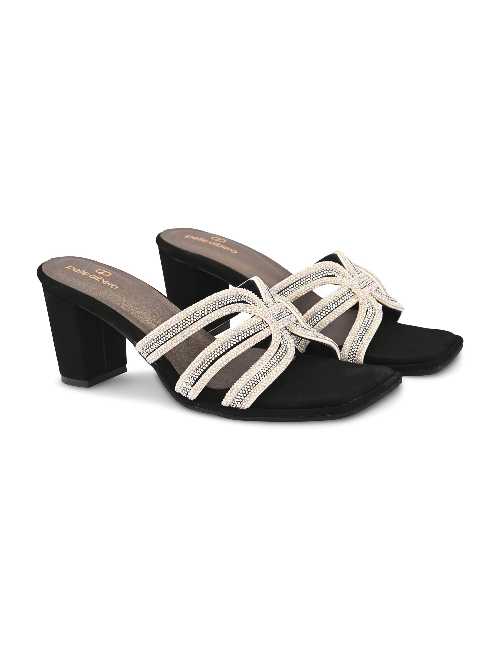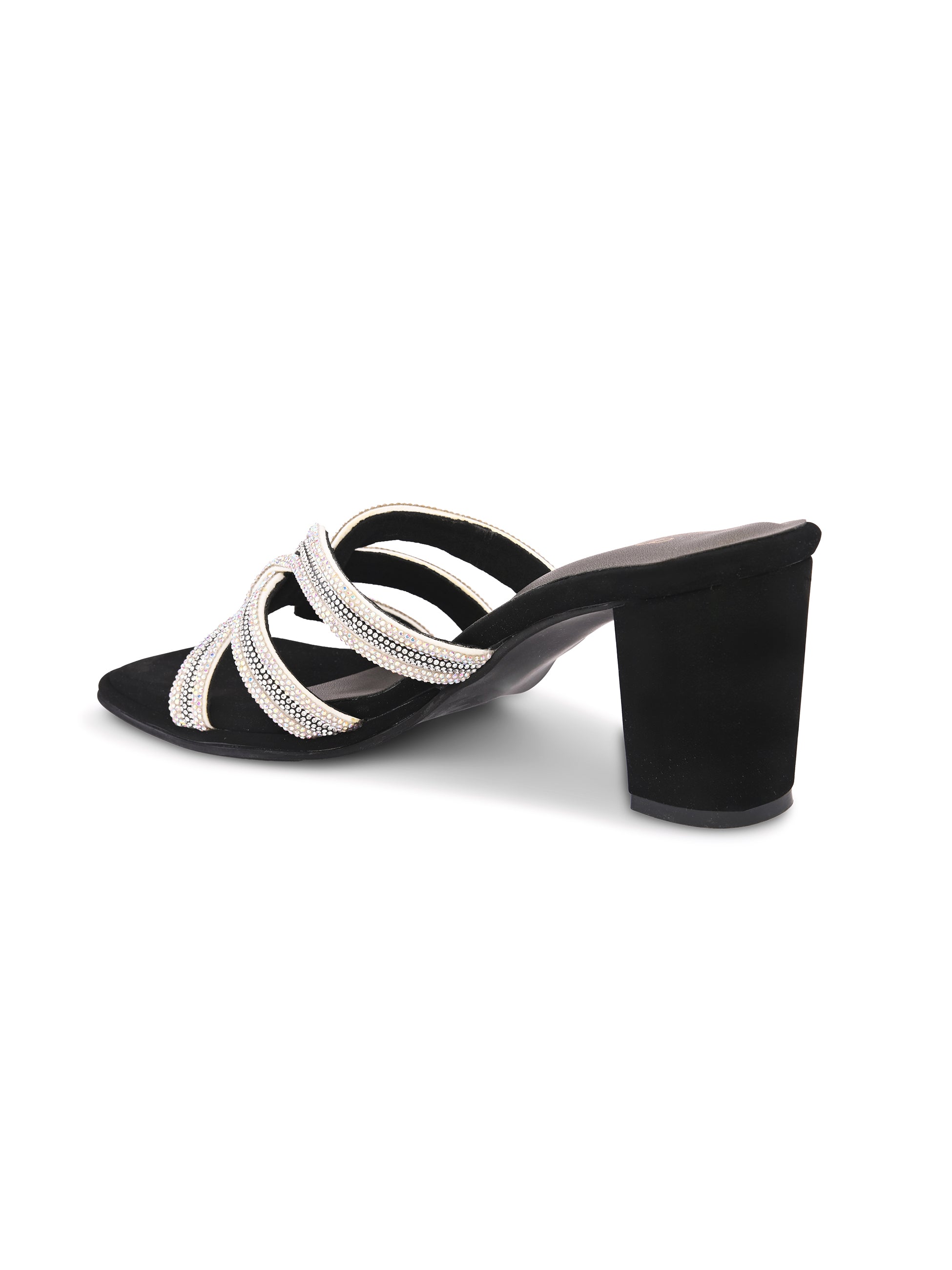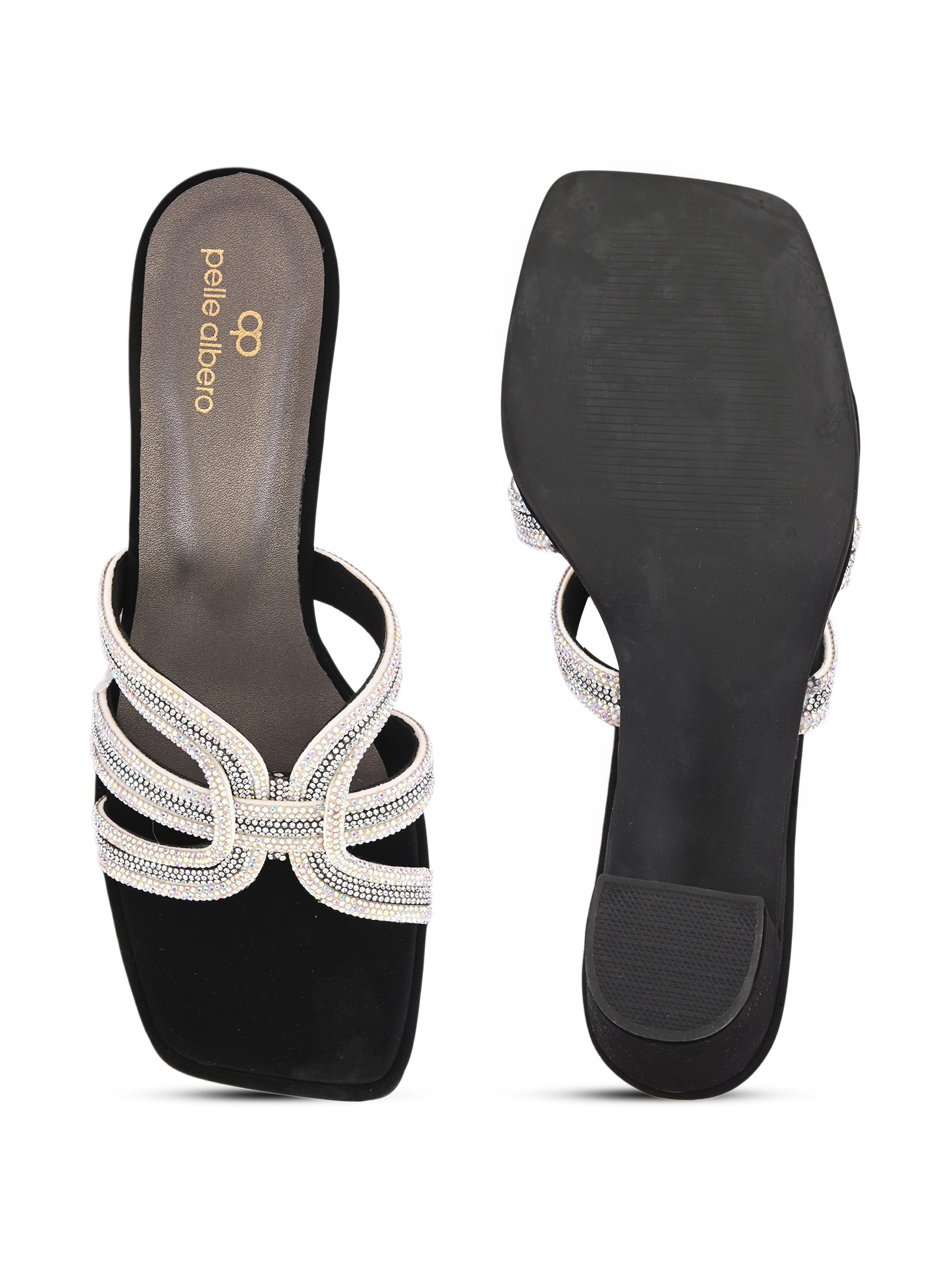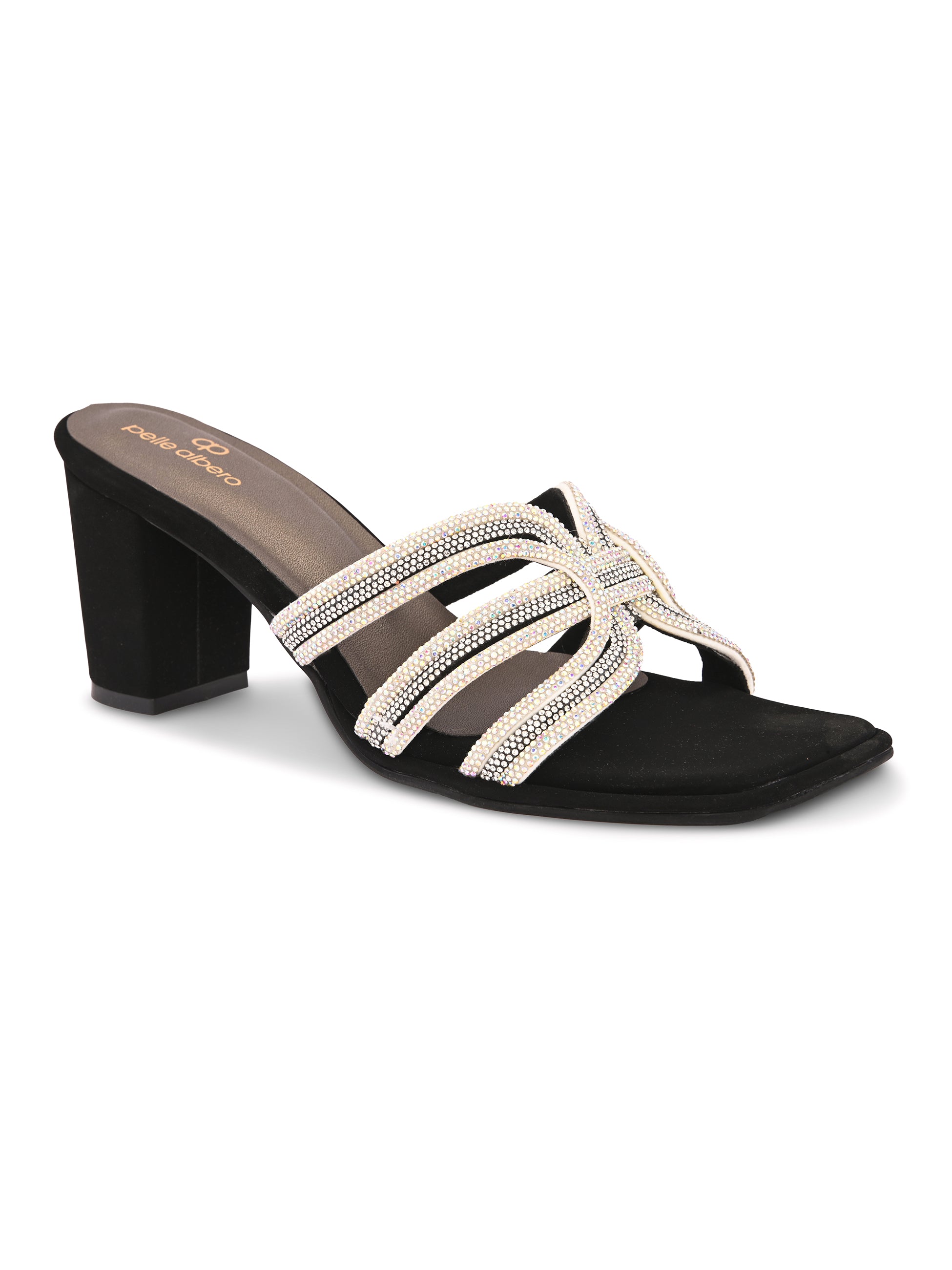 Pelle Albero Women Black Colour Lux Embellished Block Heel Sandals are crafted to bring together luxury, comfort, and timeless style. Designed with a premium synthetic upper in a rich black tone, these sandals feature elegant embellishments that add a touch of sparkle — perfect for festive, evening, or party occasions. The sturdy block heel offers balanced height and stability, while the soft cushioned footbed ensures long-lasting comfort. With an anti-slip outsole and refined finish, these sandals make every step graceful and confident. Ideal for women who prefer sophisticated glamour with comfort.