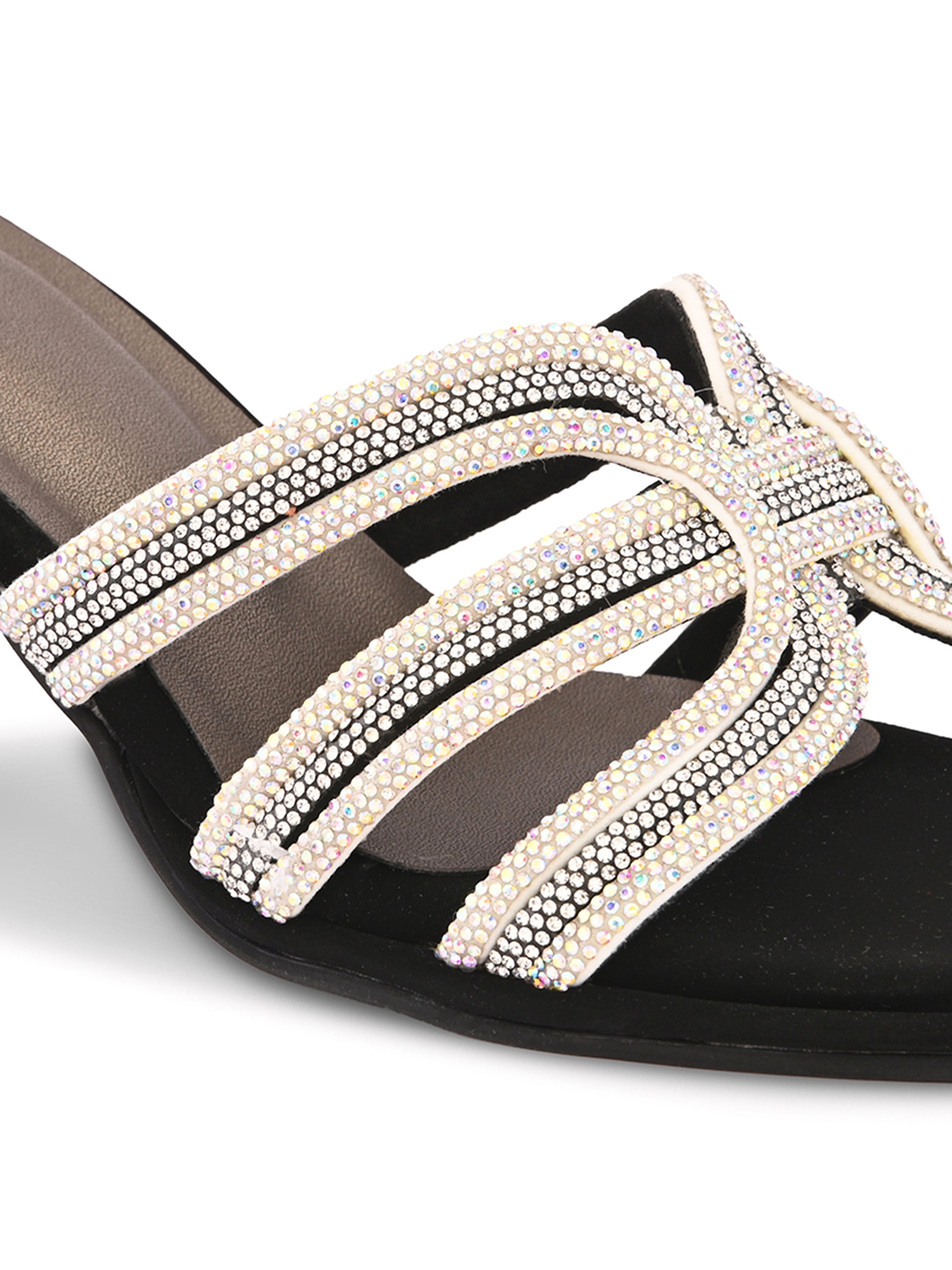 Pelle Albero Women Black Colour Lux Embellished Block Heel Sandals