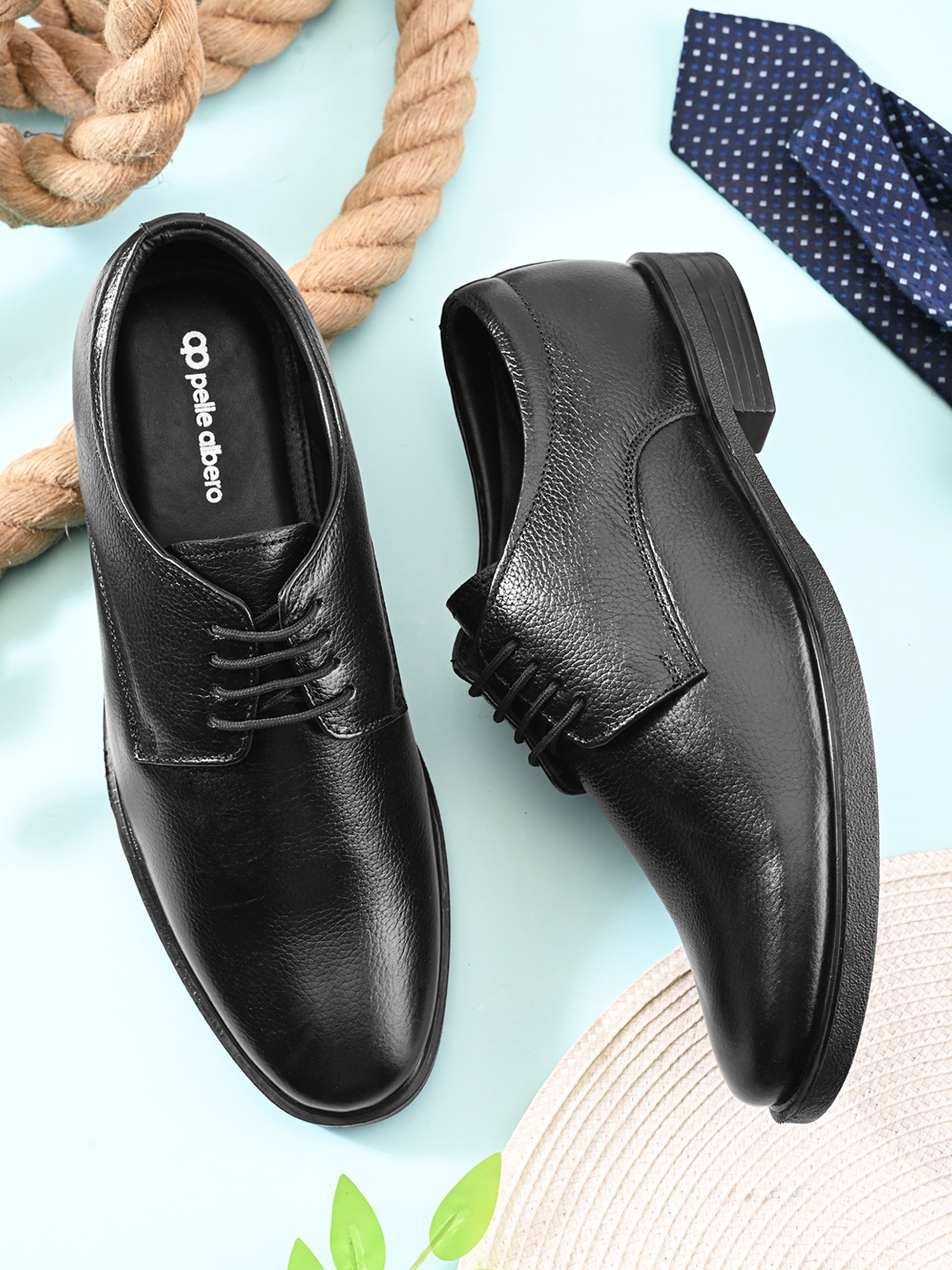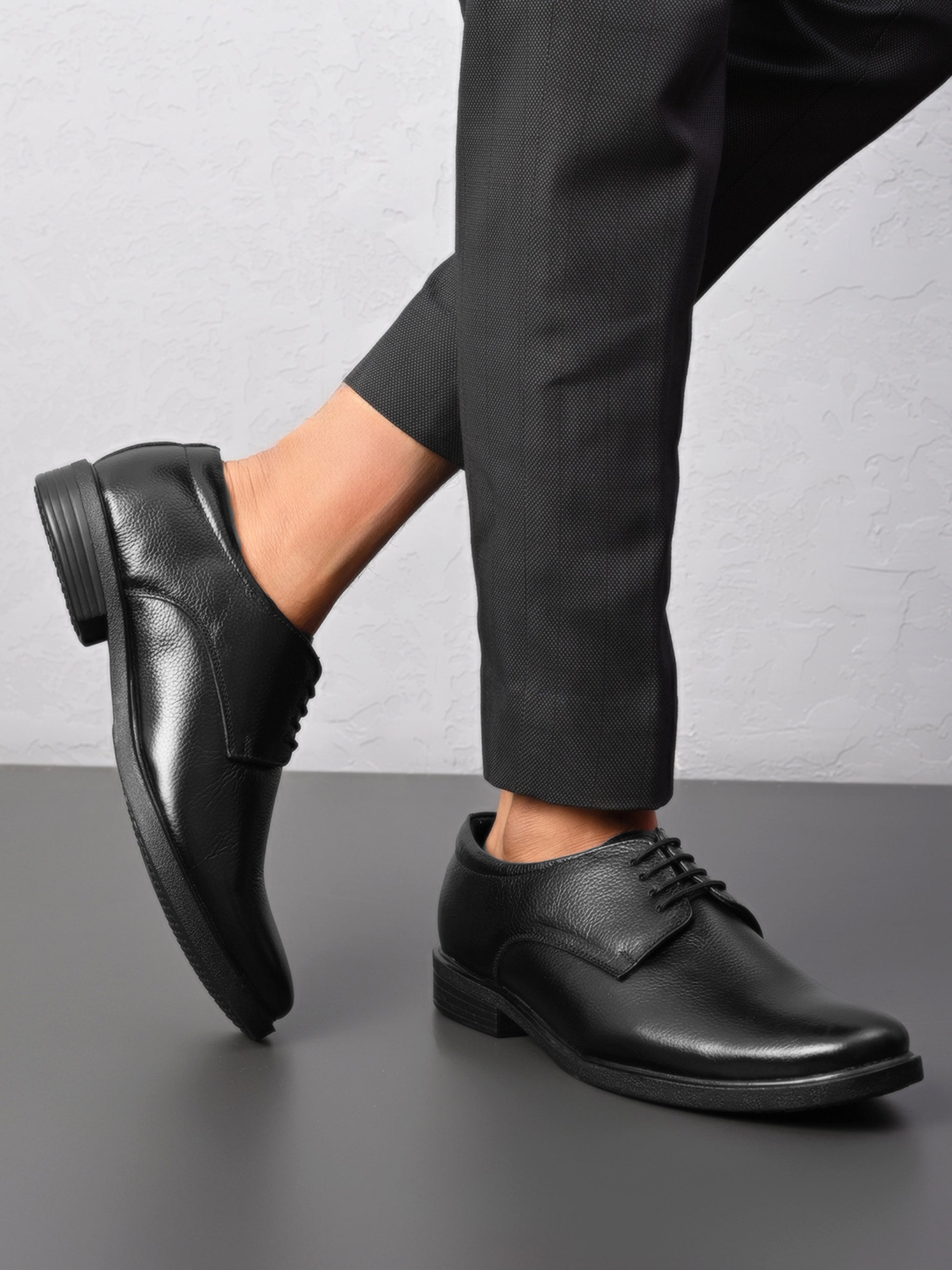 Step up your formal style with Pelle Albero Men’s Formal Comfortable Leather Black Derby – a perfect blend of sophisticated design, fine craftsmanship, and unmatched comfort. Made from premium genuine leather, these Derbies exude timeless elegance while offering superior flexibility and durability. Engineered with a cushioned insole and lightweight anti-skid outsole, they provide exceptional all-day comfort—ideal for long office hours, meetings, or formal gatherings. The sleek black finish, classic lace-up closure, and meticulous stitching highlight Pelle Albero’s commitment to detail and modern styling. Designed for today’s professionals, these formal shoes ensure you look sharp and stay comfortable—whether it’s boardroom confidence or evening elegance.