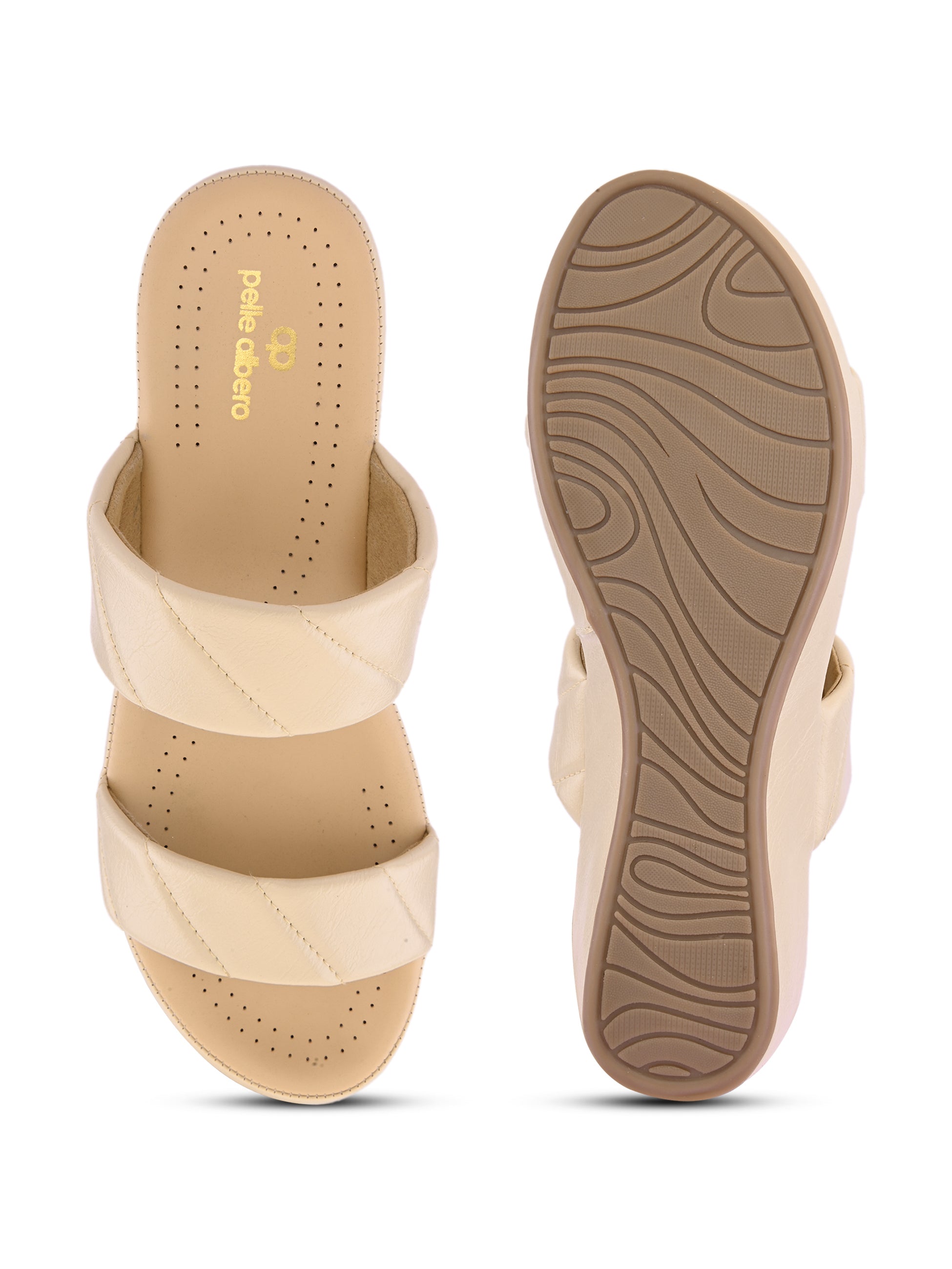 Pelle Albero Women Cream Colour Flat MaxComfort Sandals