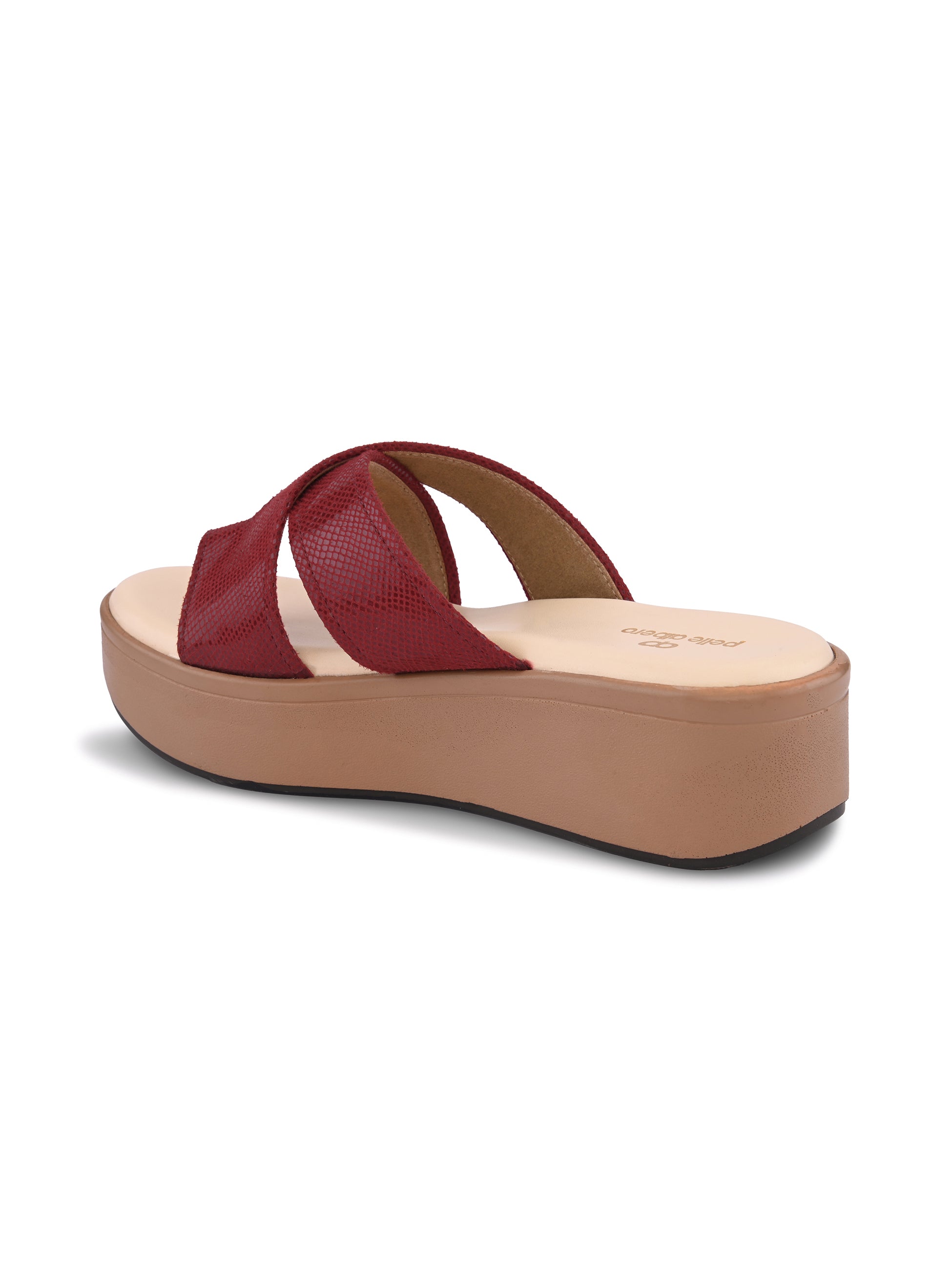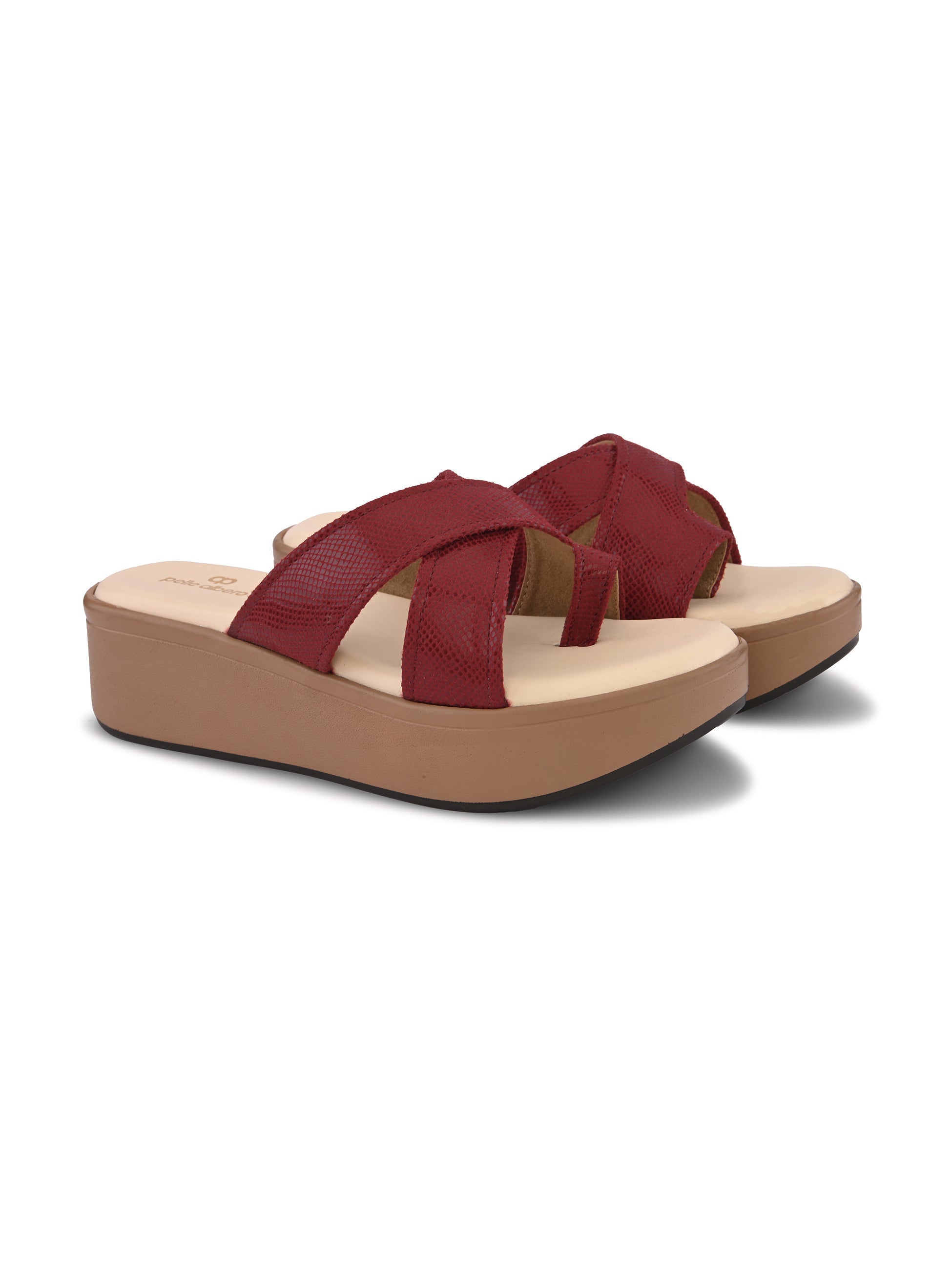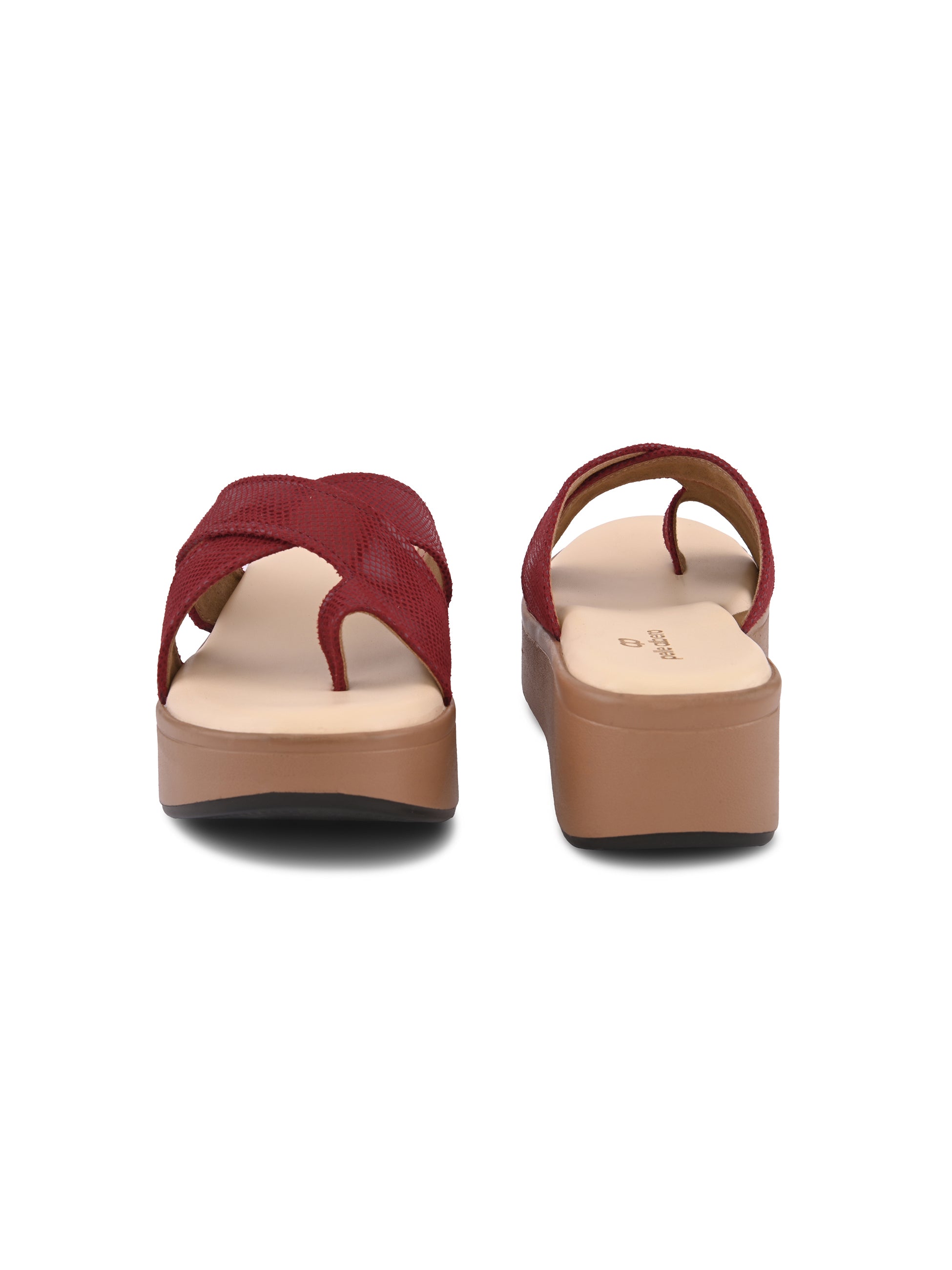 Pelle Albero Women Maroon Colour Wedge Heel Lightweight Comfort Sandals