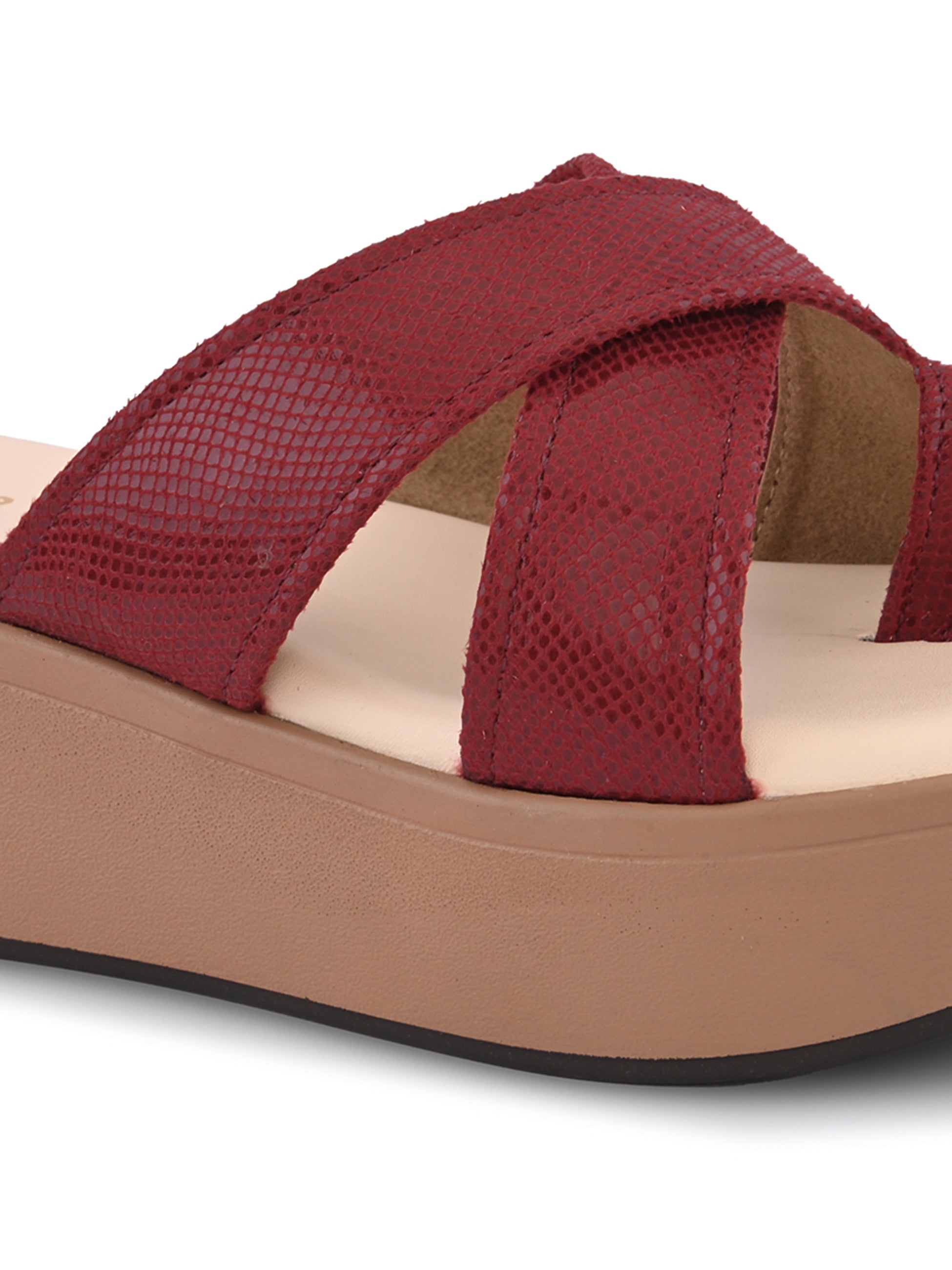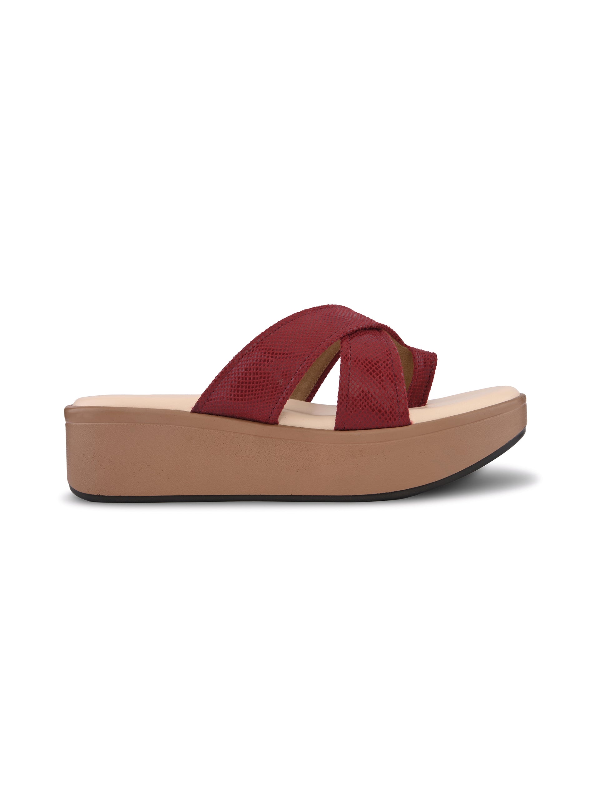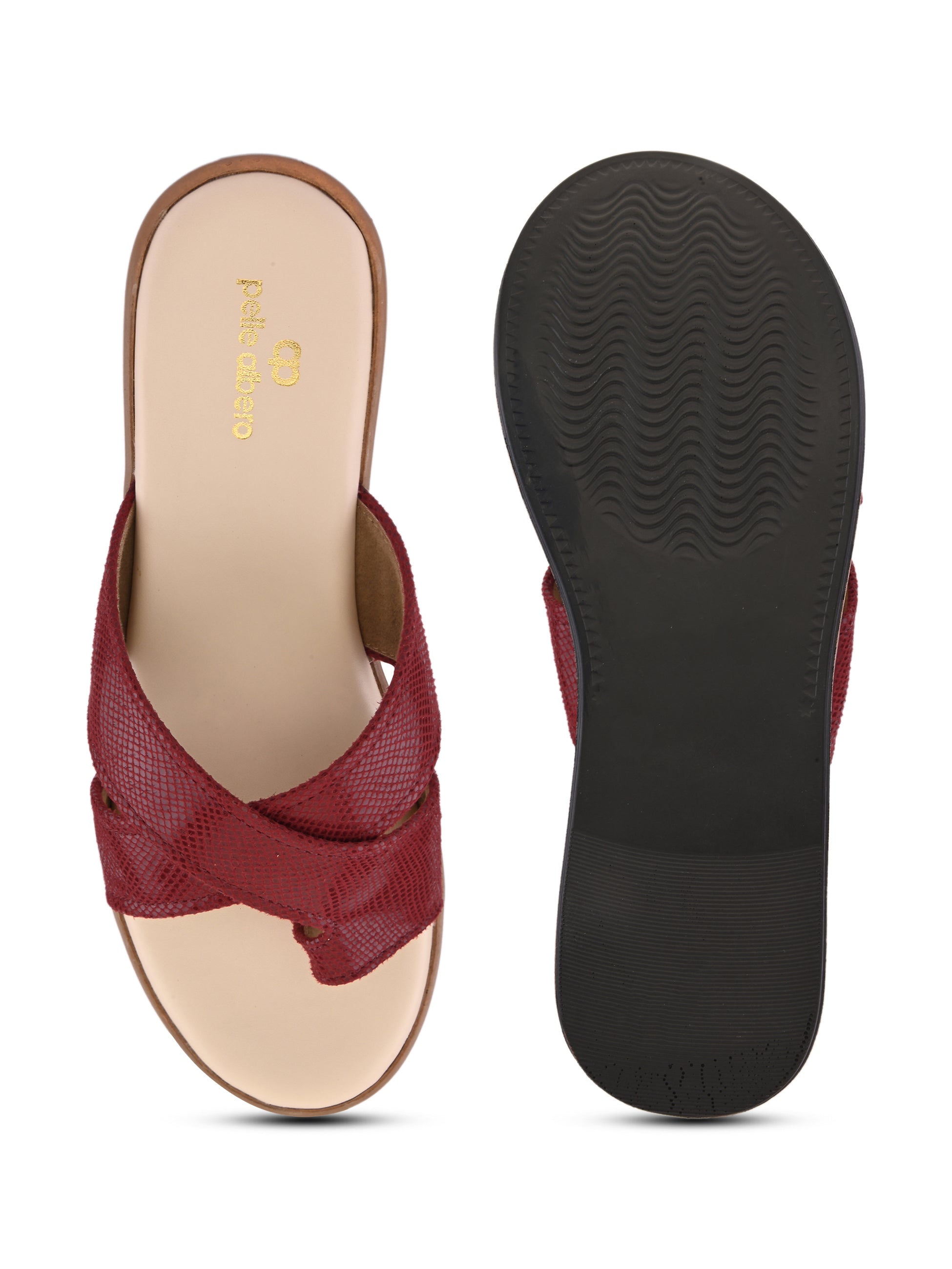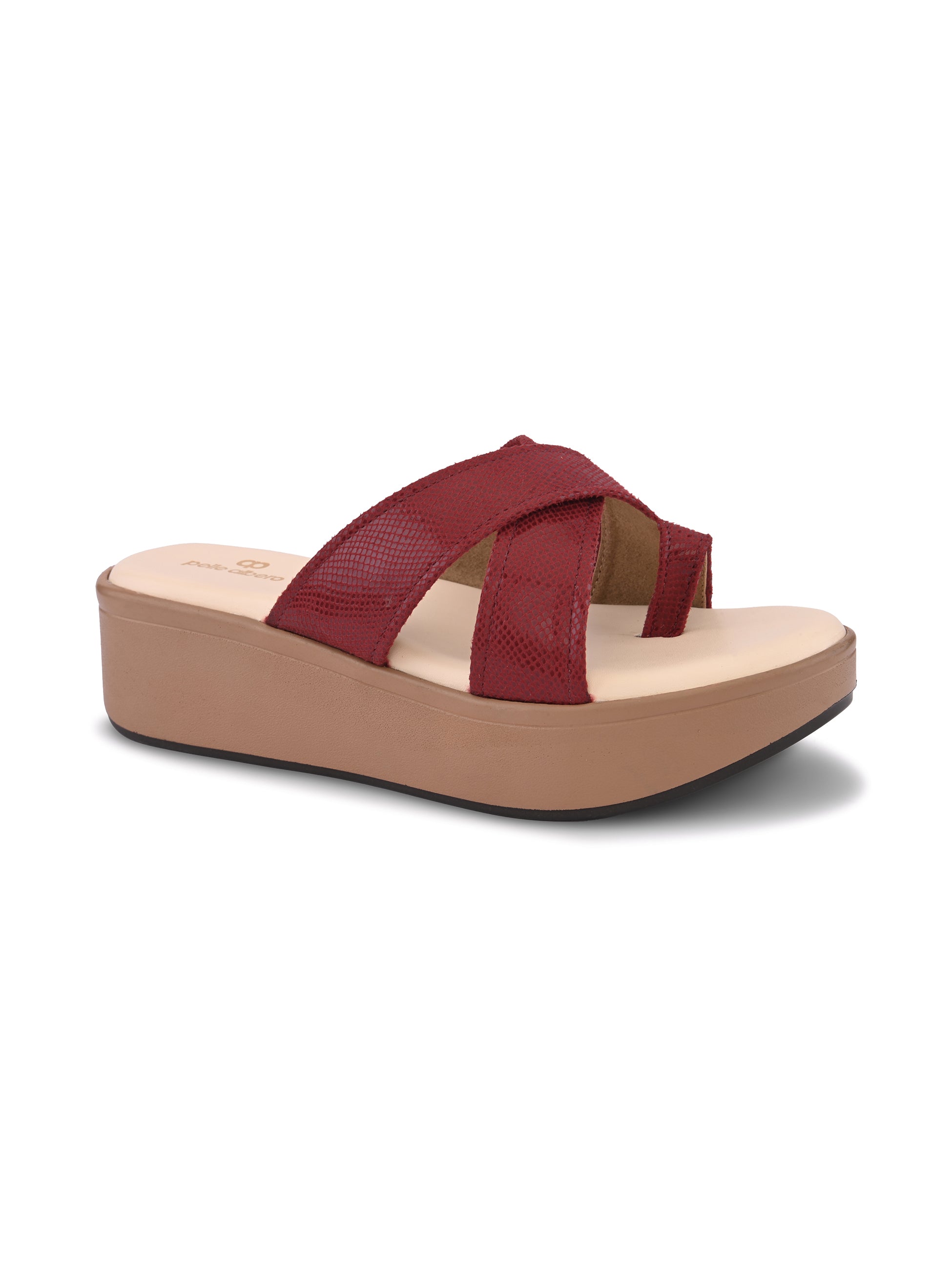 Pelle Albero Women Maroon Colour Wedge Heel Lightweight Comfort Sandals