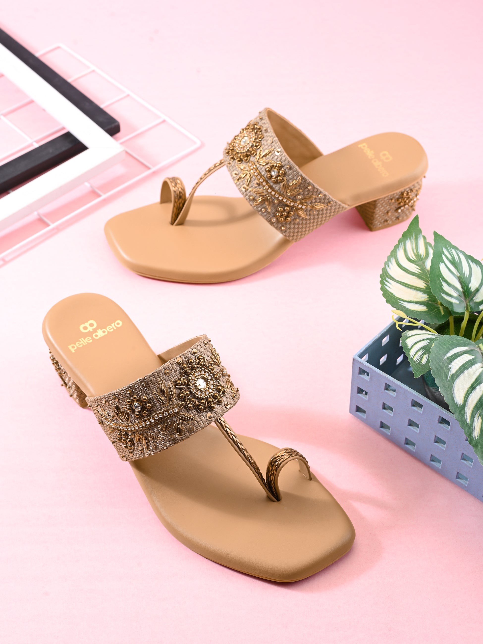 Pelle Albero Women Antic Colour Block Heel Toe-Ring Sandals are designed to bring together modern elegance and lasting comfort. Crafted with a premium synthetic upper in a rich antic finish, these sandals feature a chic toe-ring design and a stable block heel that adds both style and support. The soft cushioned footbed ensures maximum comfort, making them ideal for long hours of wear at work, festive events, or casual outings. Their versatile antic tone pairs beautifully with both ethnic and western outfits, while the non-slip sole ensures steady grip and durability. A perfect choice for women who appreciate sophisticated details and comfortable fashion.