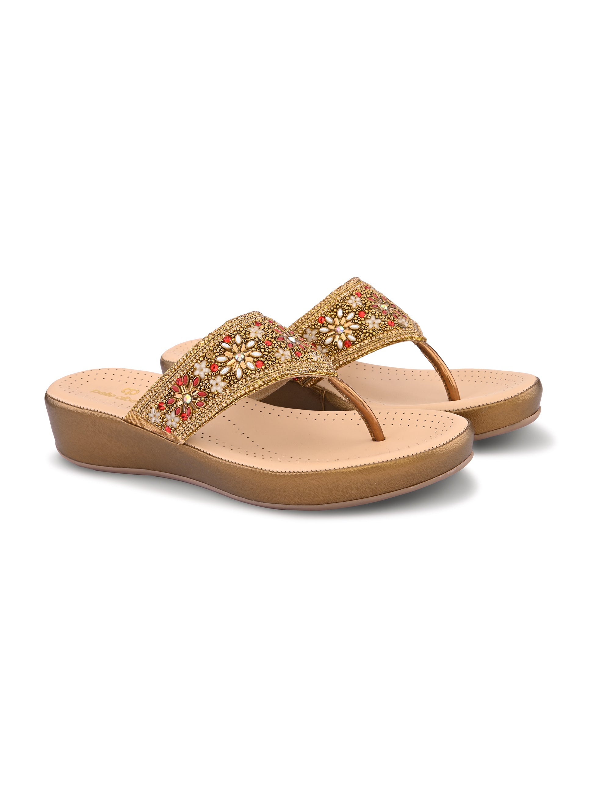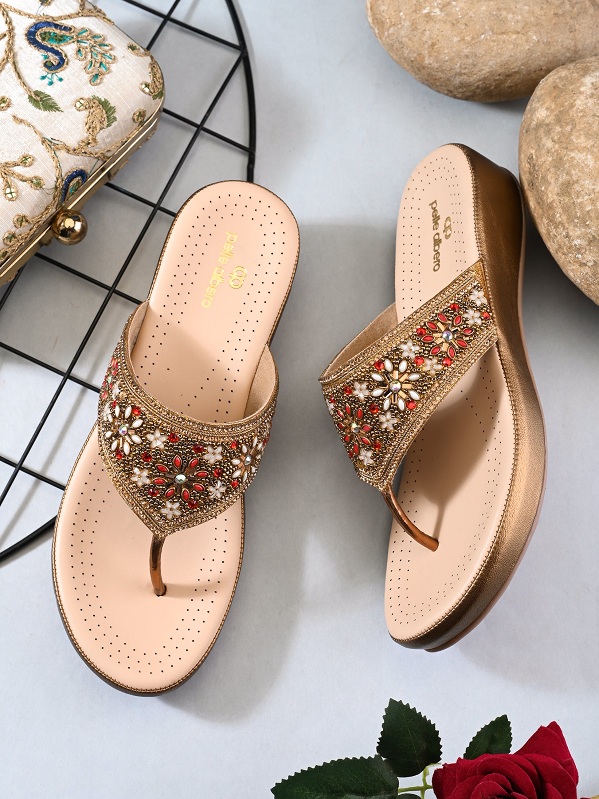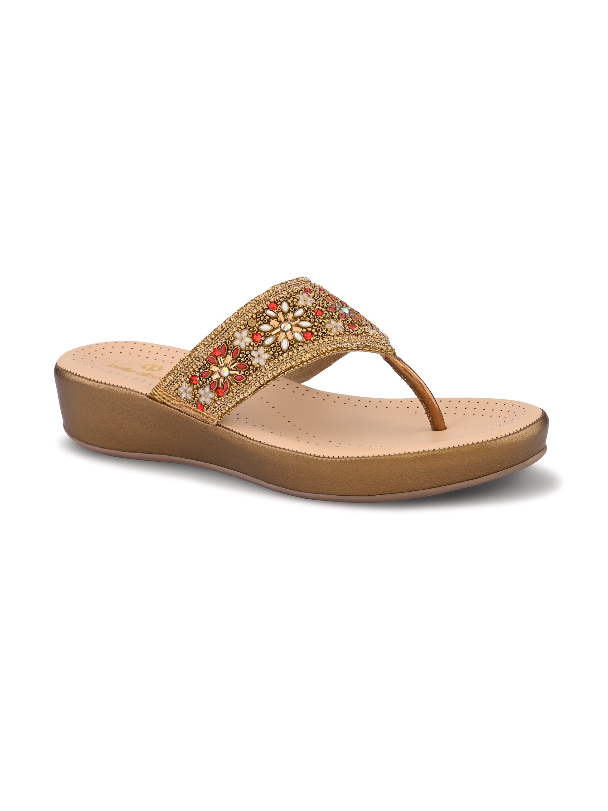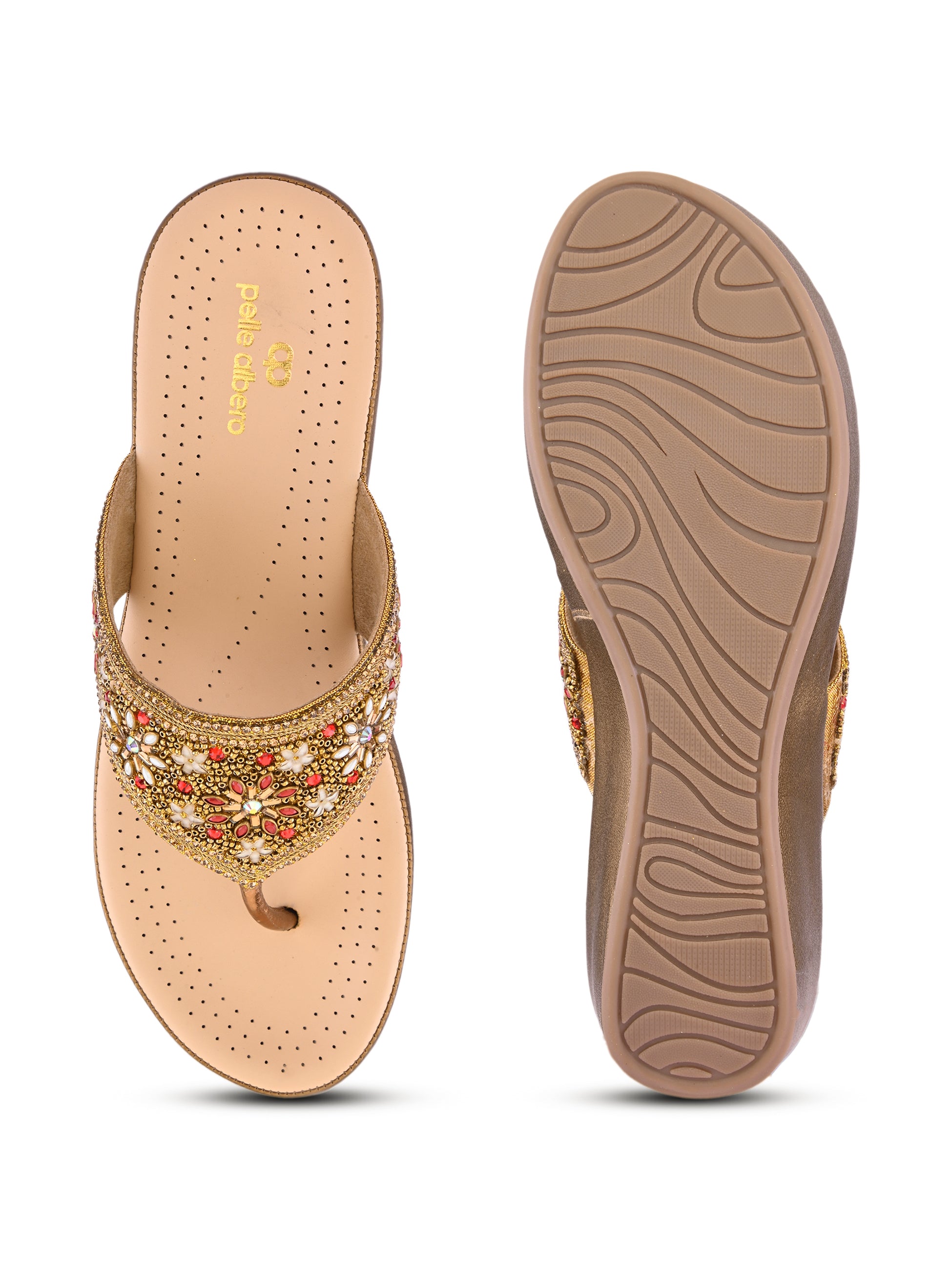 Pelle Albero Women Antic Colour Flat MaxComfort V-Shape Embellished Sandals are the perfect blend of comfort and festive elegance. Made with a premium synthetic upper in a sophisticated antic shade, these sandals feature delicate embellishments that add a subtle sparkle to every step. The V-shape strap design offers a secure fit, while the MaxComfort cushioned footbed ensures softness and support throughout the day. Designed for women who love style with substance, these flats are lightweight, durable, and versatile — pairing beautifully with ethnic wear, fusion outfits, or evening looks. Ideal for festive occasions, celebrations, and everyday chic dressing.
