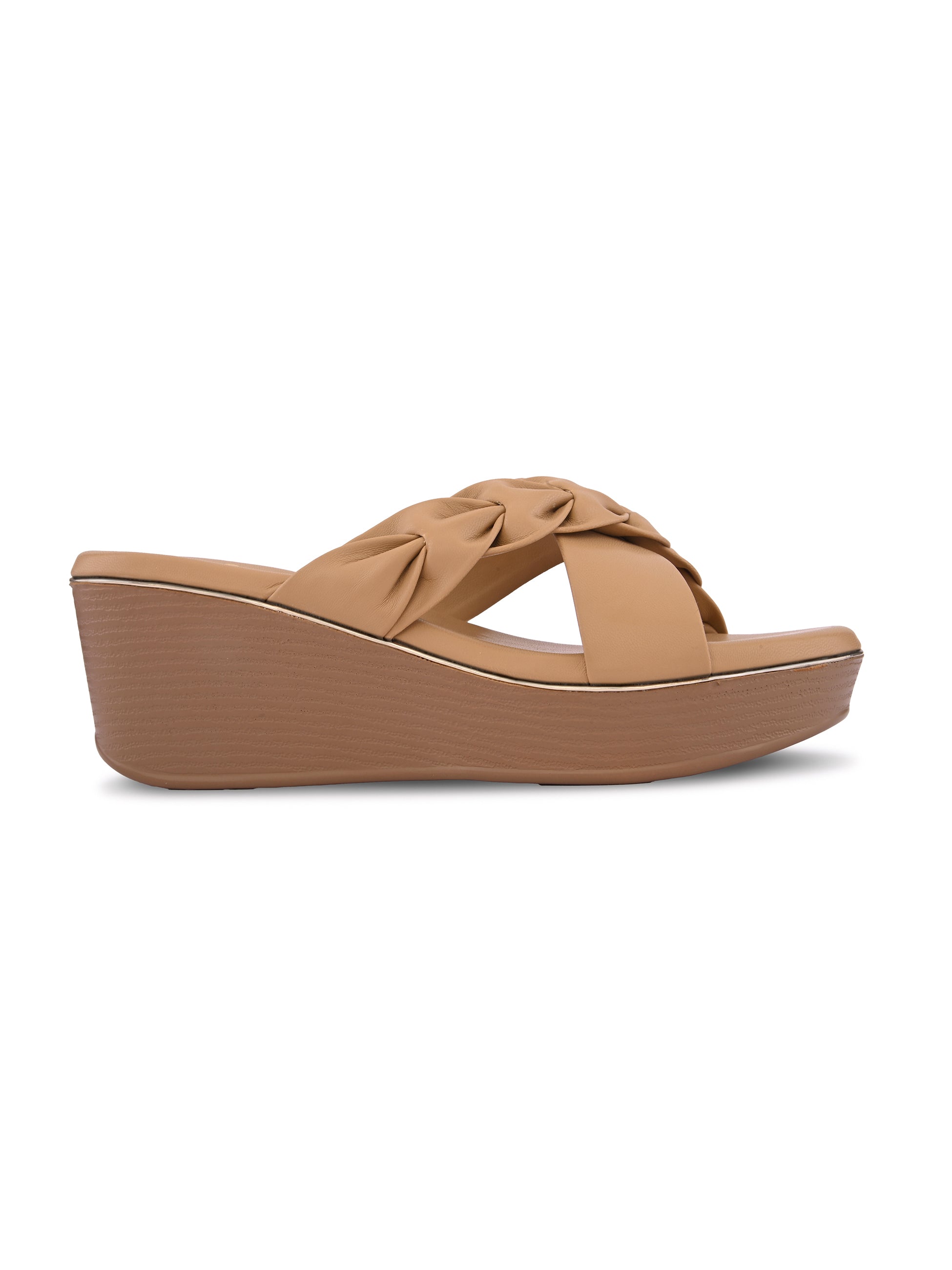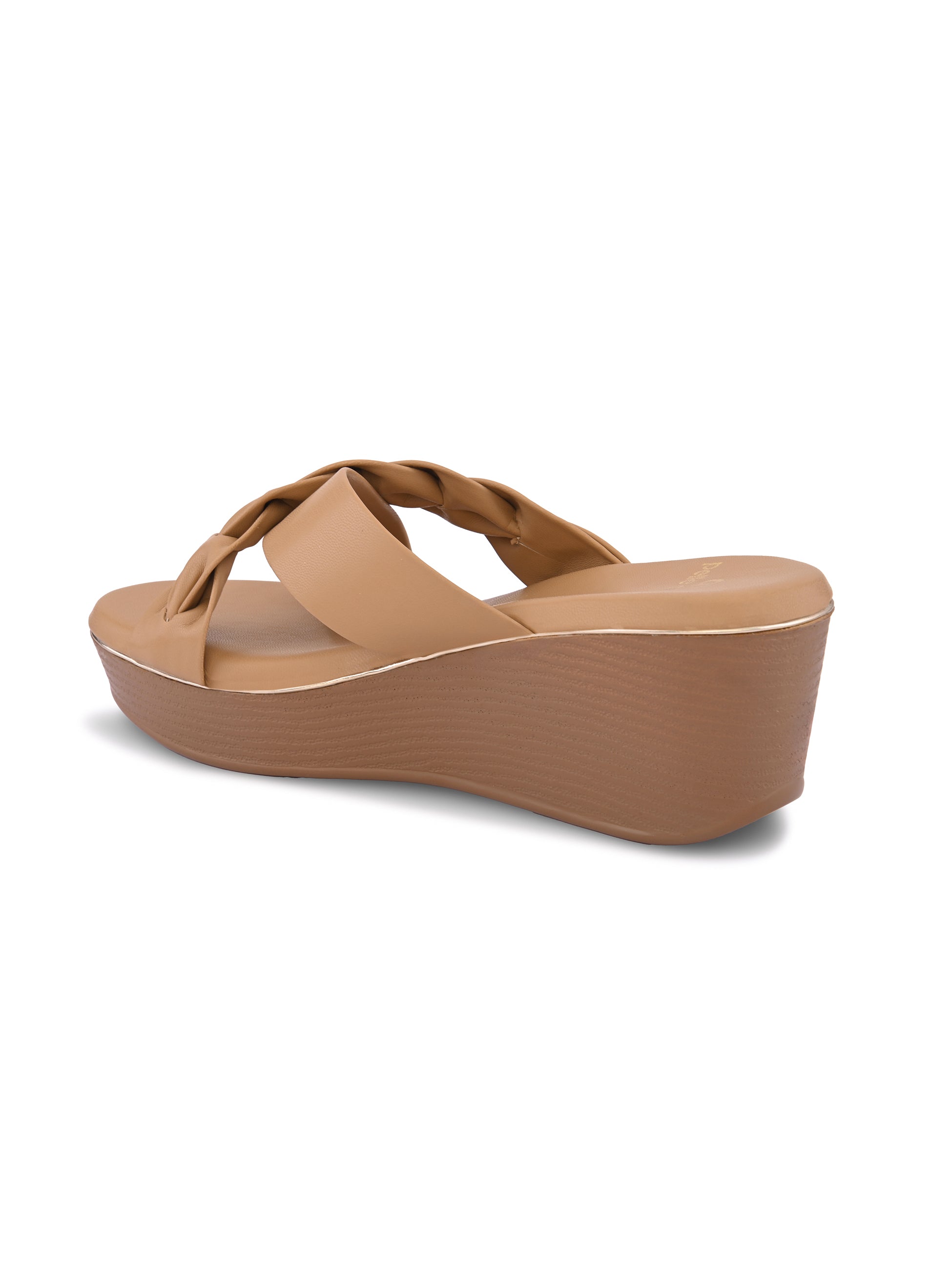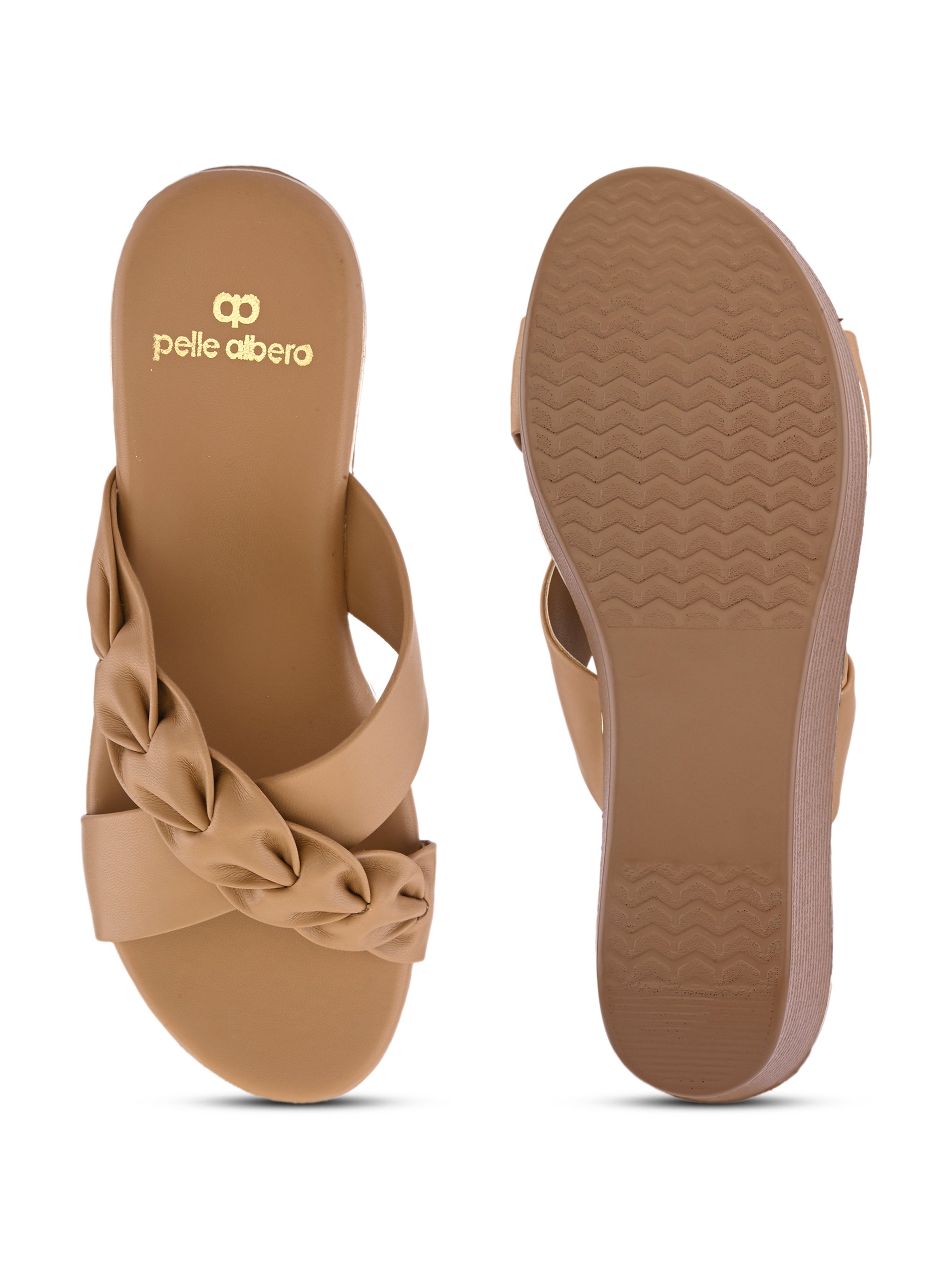 Pelle Albero Women Apricot Colour Wedge Heel Lightweight Comfort Sandals