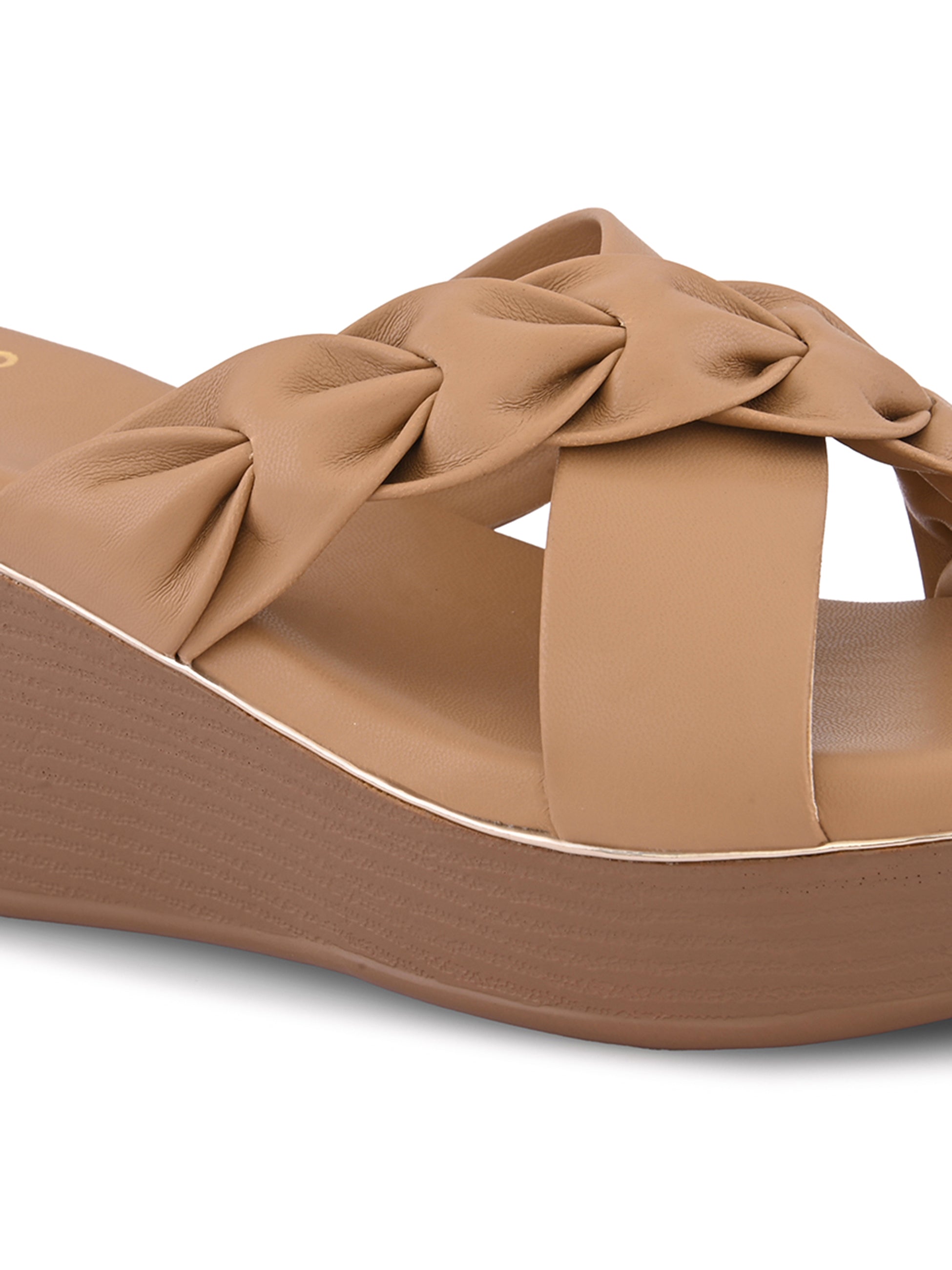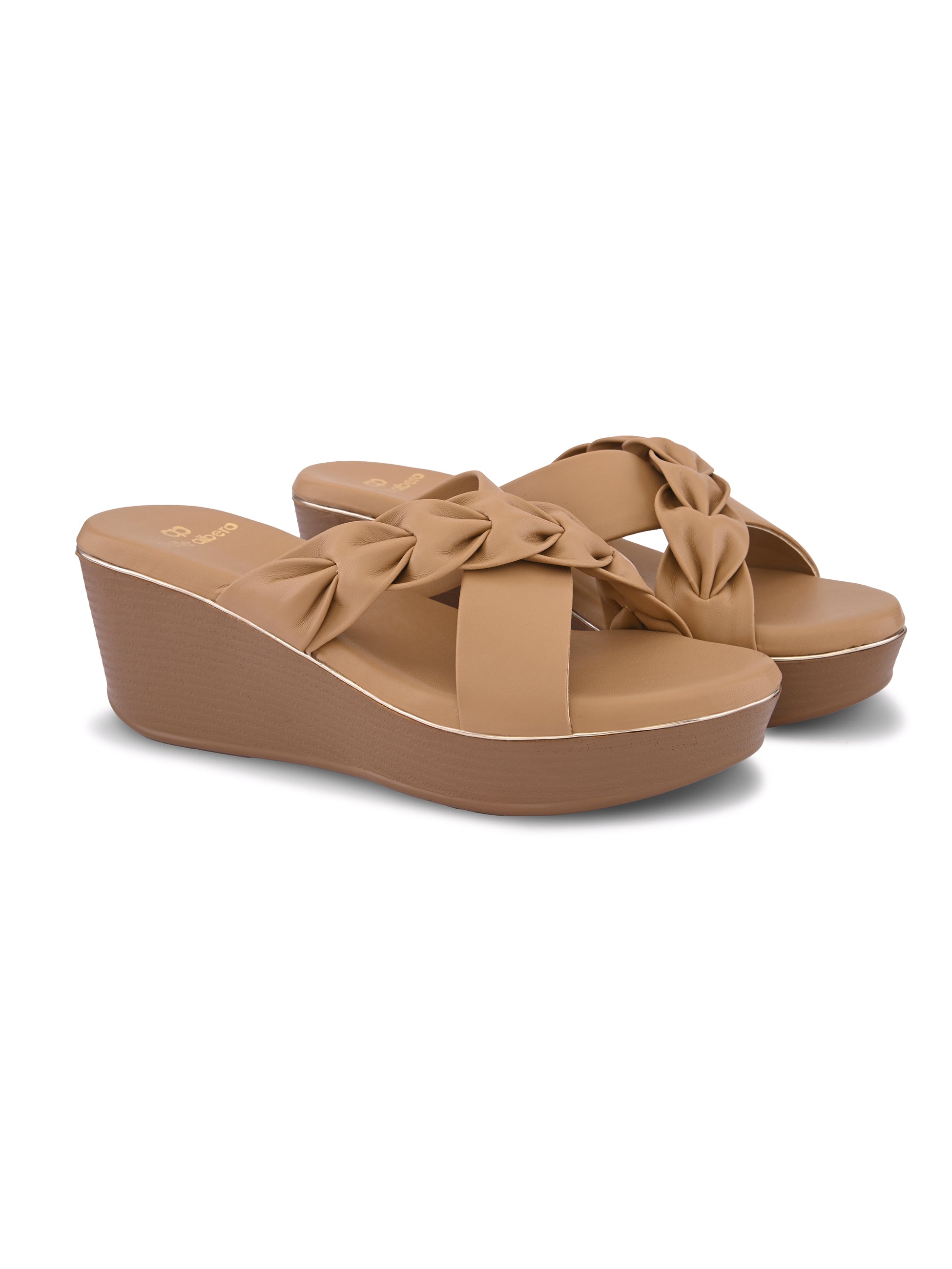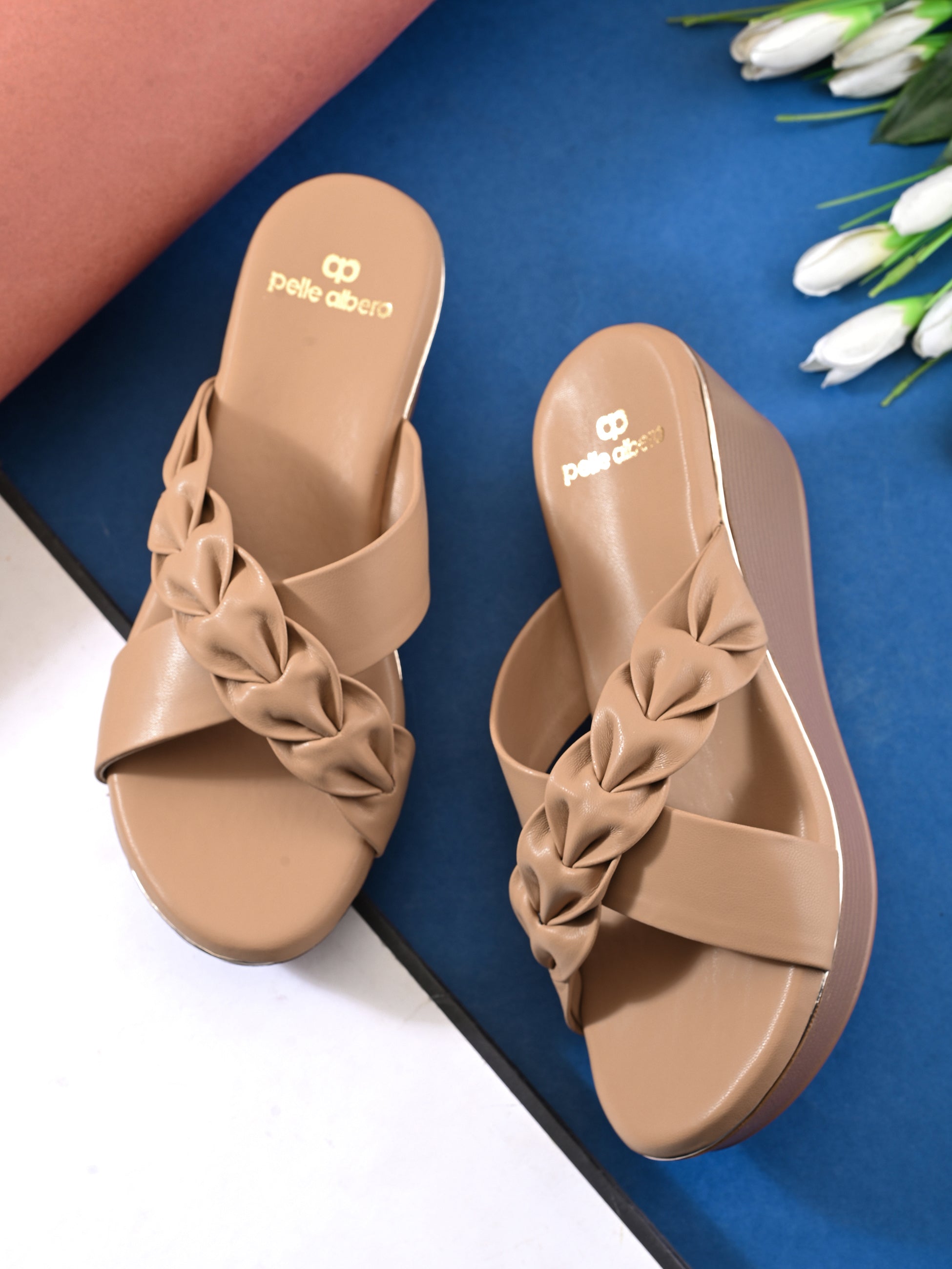 Pelle Albero Women Apricot Colour Wedge Heel Lightweight Comfort Sandals