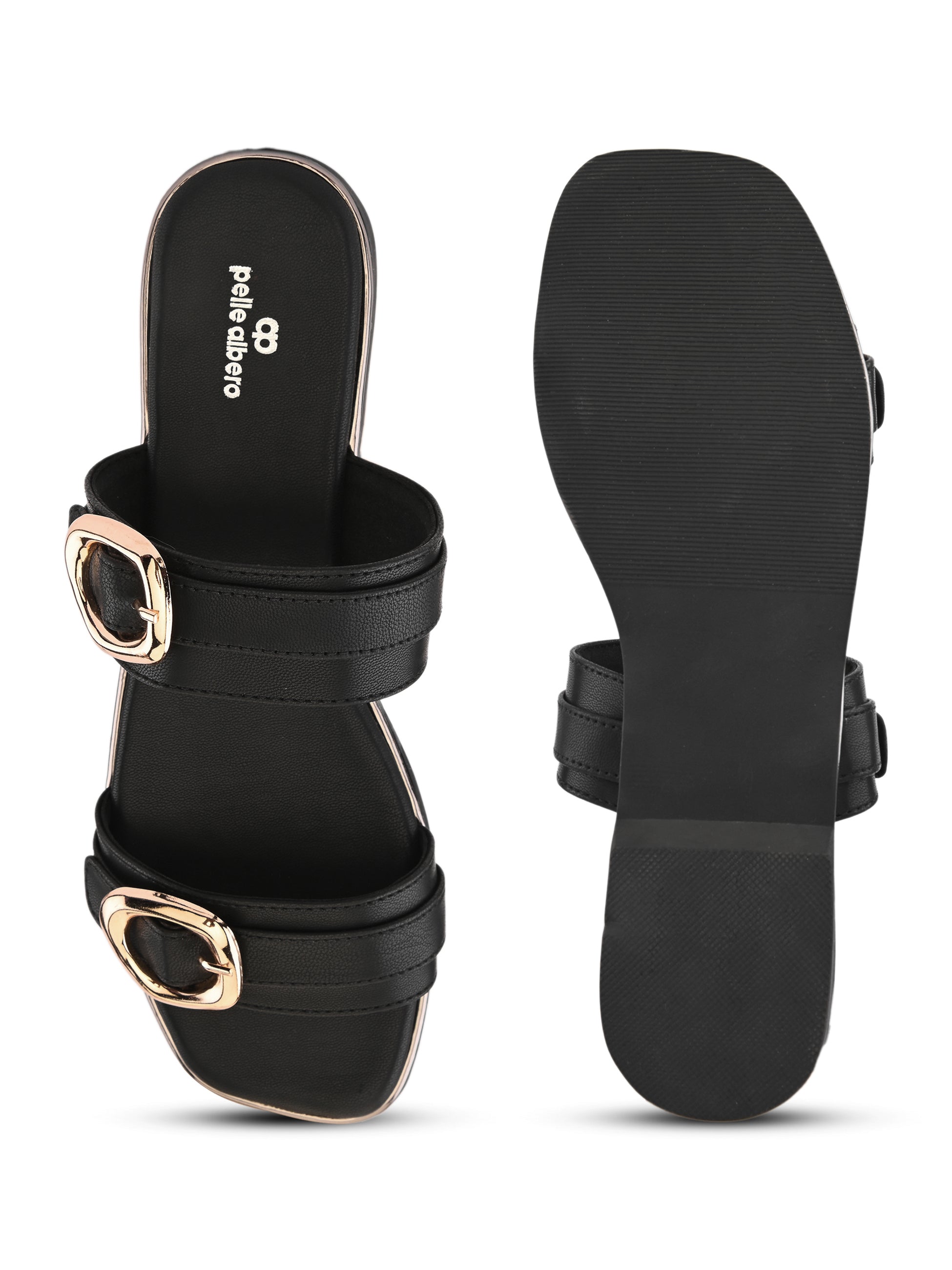 Pelle Albero Women Black Colour Lightweight Flat Sandals are designed for women who value effortless comfort and everyday style. Crafted with a soft PU upper in a subtle Black shade, these flats offer a minimal yet elegant look that pairs perfectly with any outfit — from ethnic kurtas to casual dresses. The lightweight sole and cushioned footbed ensure all-day comfort, while the anti-slip outsole provides stable grip on every surface. Ideal for daily wear, travel, or relaxed outings, these sandals combine practical design with timeless appeal — perfect for modern women on the go.