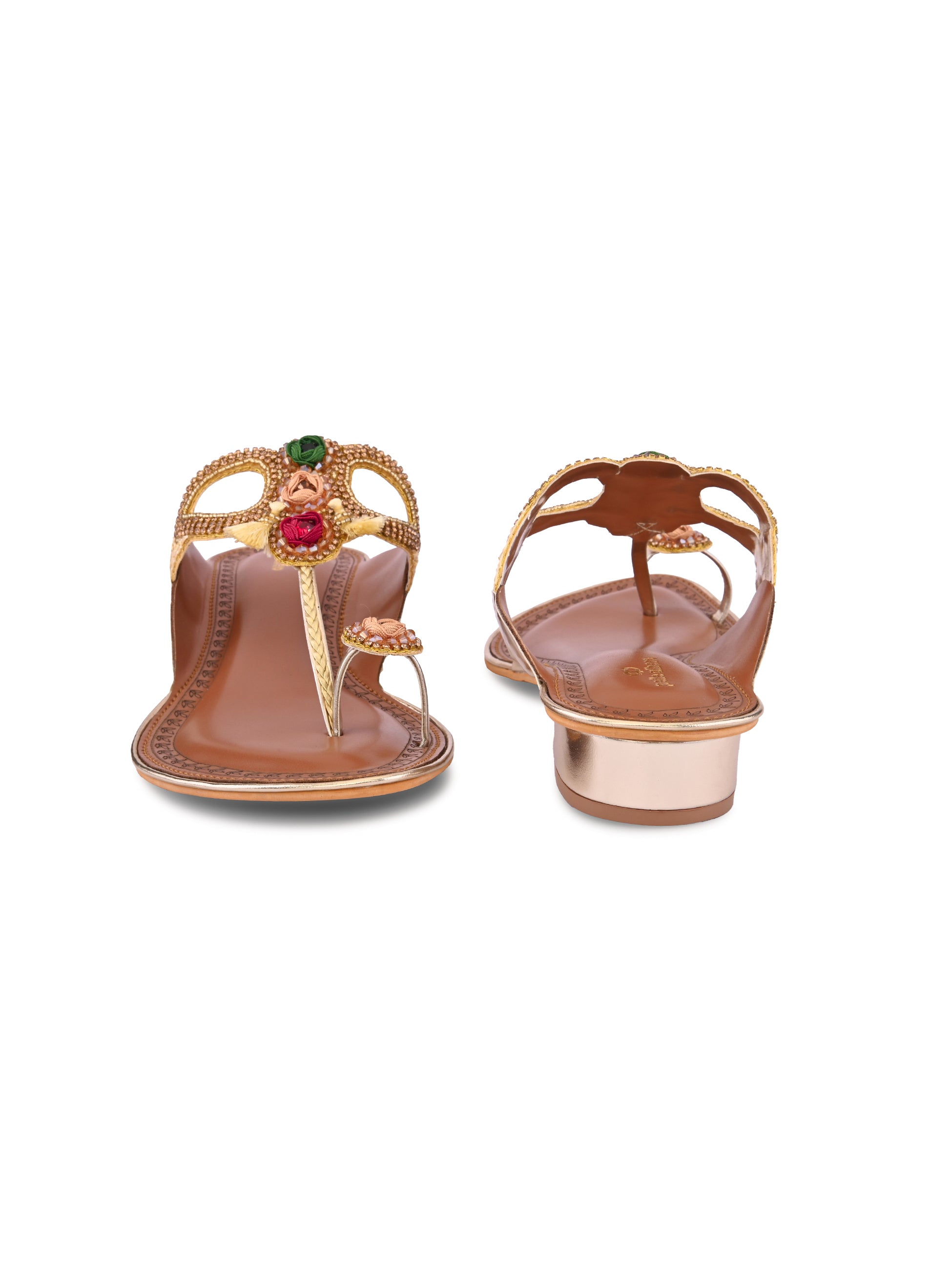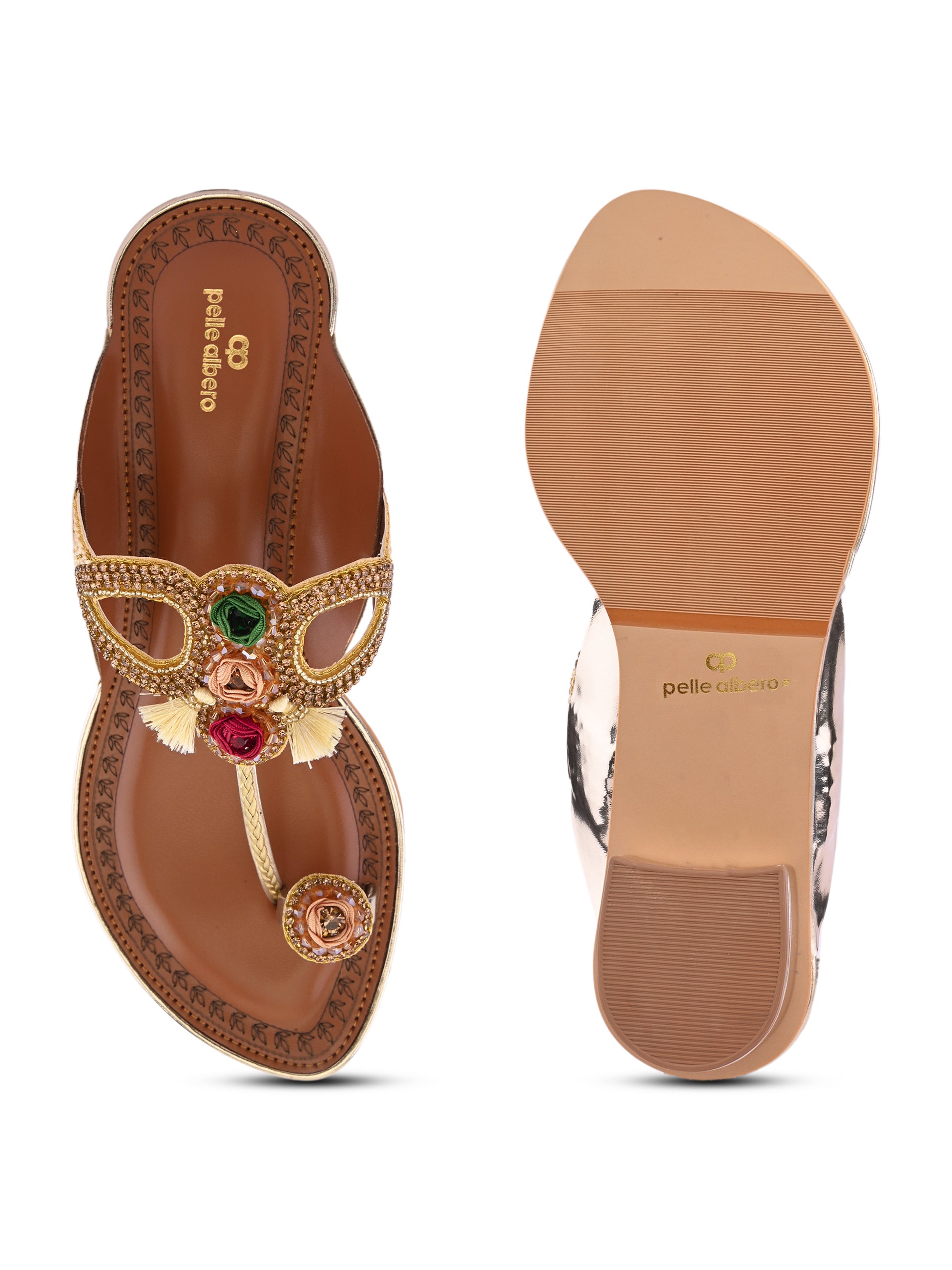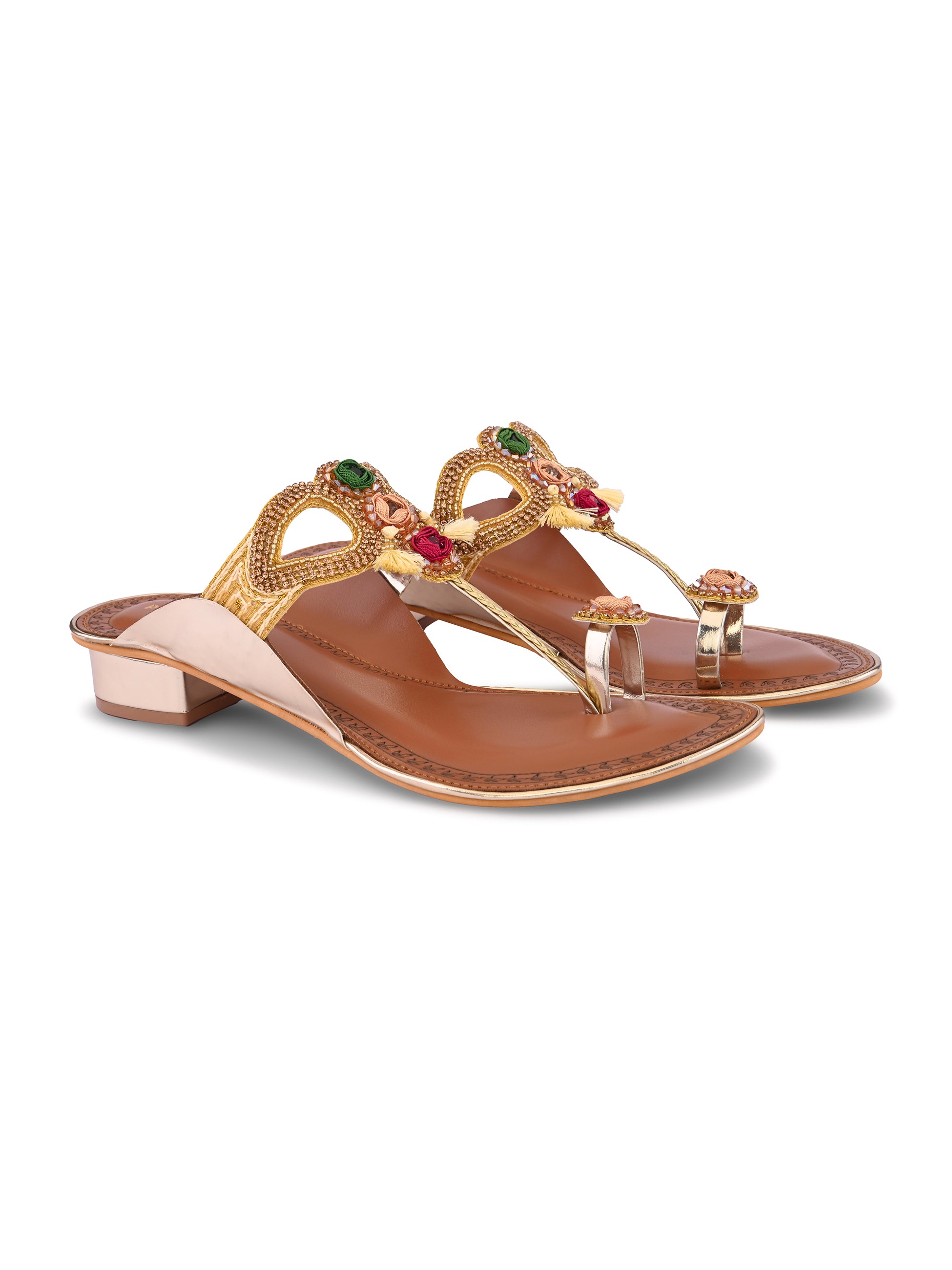 Pelle Albero Women Golden Colour Block Heel Kolhapuri Sandals blend traditional charm with modern elegance. Crafted with a premium synthetic upper in a rich golden tone, these sandals feature a classic Kolhapuri design elevated with a comfortable block heel for added height and sophistication. The soft cushioned footbed provides lasting comfort, while the anti-slip outsole ensures stability with every step. Lightweight and stylish, these sandals are perfect for festive wear, ethnic outfits, weddings, and special occasions. Designed for women who love heritage-inspired fashion with a contemporary twist.